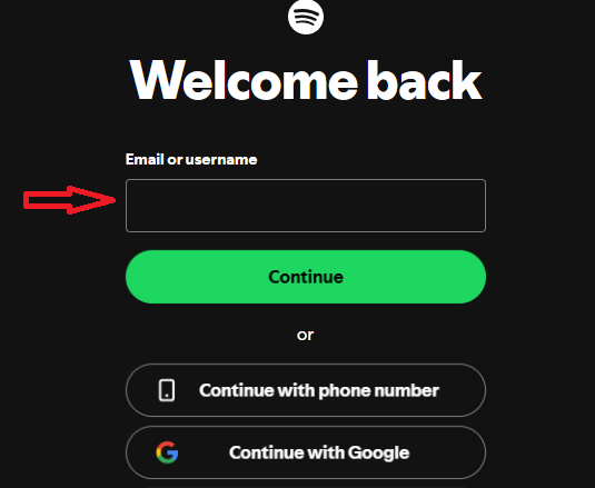 After clicking, It will take you to Spotify account login page., where you can sign in using your Spotify credentials (username and password )or a connected account.spotify login page